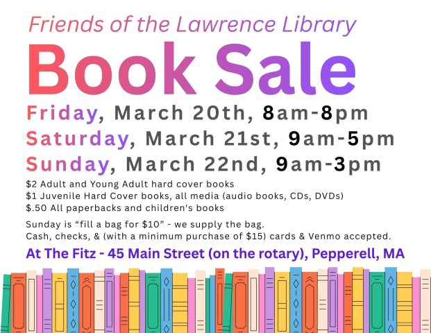 The annual book sale will be held at The Fitzpatrick Collective, located near the rotary at 45 Main Street, Pepperell, MA.